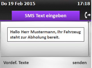 Alcatel-Lucent IP Touch Endgeräte verfügen über eine komfortable Tastatur, mit der Textnachrichten verschickt werden können. Neu ist jetzt, dass diese Texte nicht nur an Teilnehmer an der Telefonanlage versendet sondern auch als SMS an externe Mobiltelefone verschickt werden können. Interessant für Unternehmen, die Ihren Kunden häufig kurze Informationen zukommen lassen müssen: „Ihr Wagen steht zur Abholung bereit“; „Termin nicht vergessen“; „Bitte dringend anrufen: Direktor Meyer“….Dabei können Sie bequem aus vorformulierten Textnachrichten wählen oder individuell neue erstellen. Die Lösung bietet so einen extrem leichter Zugriff auf die SMS Funktionen. Übrigens: eine Flash SMS wird auf dem Mobiltelefon sofort angezeigt! Es können freie Texte aber auch vordefinierte Texte verschickt werden. Dadurch geht das Versenden von Standard-Informationen z.B. an Ihre Kunde sehr einfach und schnell.