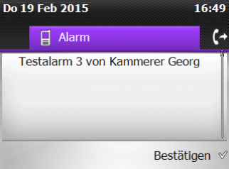 Verwenden Sie Ihre Alcatel-Lucent IP Touch Endgeräte zum Auslösen und Anzeigen von Alarmmeldungen. Entweder unterstützend für die Brandmeldeanlage oder für Randale-Alarmierung an die umliegenden Büros. Frei definierbare Alarmtexte inklusive Variablen wie Auslöser, Raum… Dies ist komfortabel über den sys-Collection Manager zu verwalten. Hier kann der Kunde selbst Alarme anlegen und verwalten. Es gibt eine ausgeklügelte Berechtigungsstruktur, wer welchen Alarm sieht und Auslösen oder auch wieder Löschen kann. Selbstverständlich ist der Alarm auch während eines Telefonats zu sehen und hören.