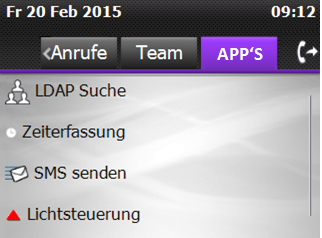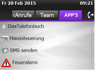 Bisher wurde für jede Applikation ein eigener Menüpunkt oder Reiter verwendet. Jetzt gibt es auf dem Telefon einen Applikationsreiter der alle Applikationen übersichtlich darstellt.