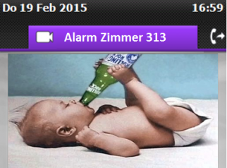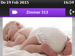 Sobald das Kind sich im Kinderbett bewegt oder schreit, wird an der Rezeption ein Alarm am IP-Endgerät ausgelöst. Zu sehen ist das Bild, dass die Kamera aus dem Zimmer überträgt. So können die Eltern informiert werden, um nach ihrem Baby zu schauen. Eine Meldung auf das Mobiltelefon ist zusätzlich möglich. Um nach dem Essen entscheiden zu können, ob Mann/Frau noch in die Bar gehen kann, können die Eltern aktiv am Telefon in der Bar (gesichert durch Eingabe eines PIN) schauen, ob das Baby noch ruhig schläft.